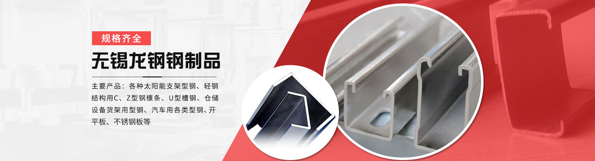 無錫市龍鋼鋼制品有限公司生產各種冷彎型鋼,包括C型鋼,Z型鋼,U型鋼,鍍鋅C型鋼,冷彎C型鋼,不銹鋼C型鋼,光伏支架等鋼制品,公司擁有雄厚的技術力量,優越的生產設備,良好的生產工藝.